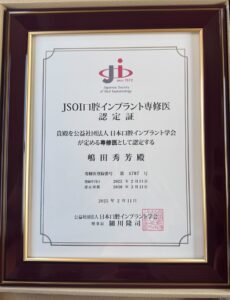 良好と認められれば晴れて日本口腔インプラント学会 専修医となります。