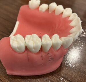その後顎模型を使って、歯周病に対する再生療法の実習を行いました。