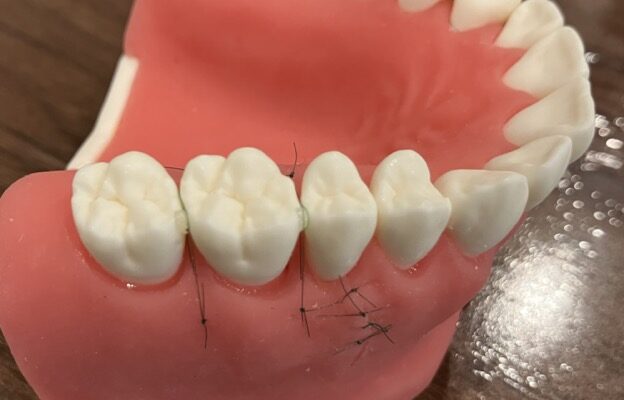 その後顎模型を使って、歯周病に対する再生療法の実習を行いました。
